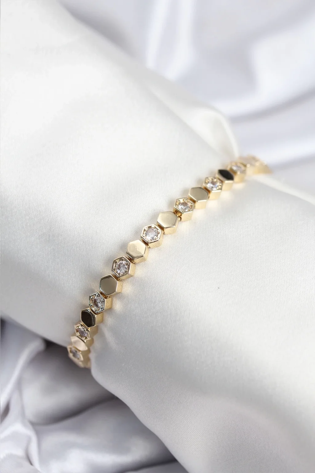 Pirinç VIP Seri Gold Renk Petek Model Kadın Bileklik
