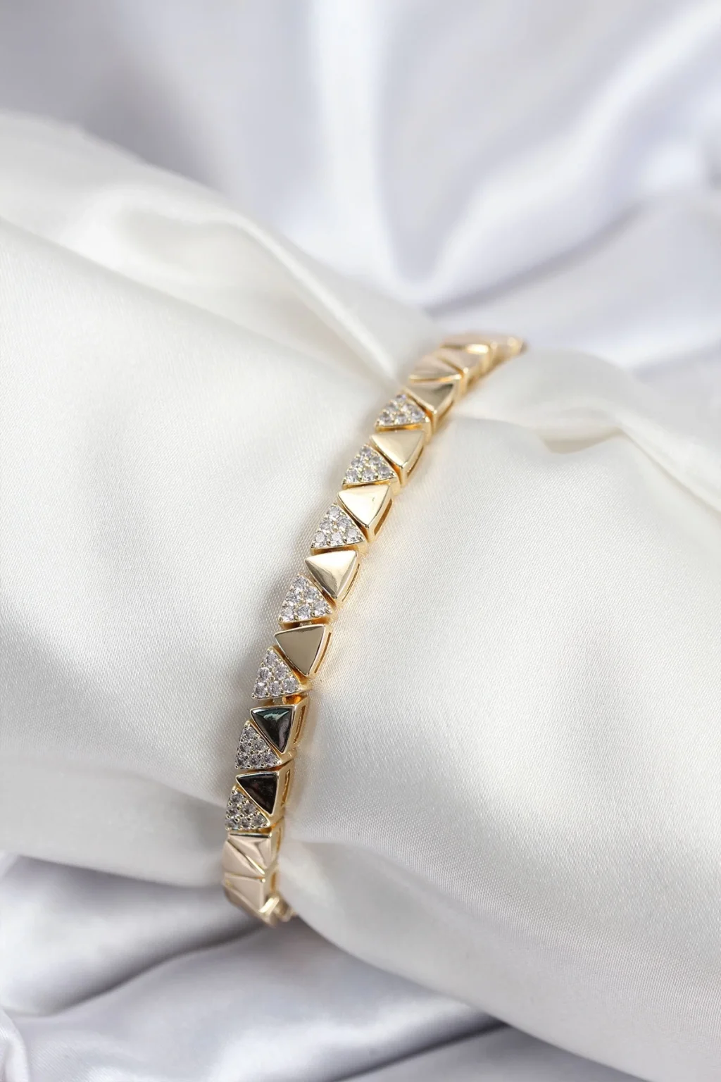 Pirinç VIP Seri Gold Renk Sıralı Üçgen Model Kadın Bileklik