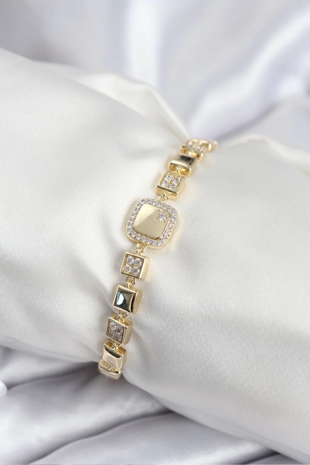 Pirinç VIP Seri Gold Renk Zirkon Taşlı Model Kadın Bileklik