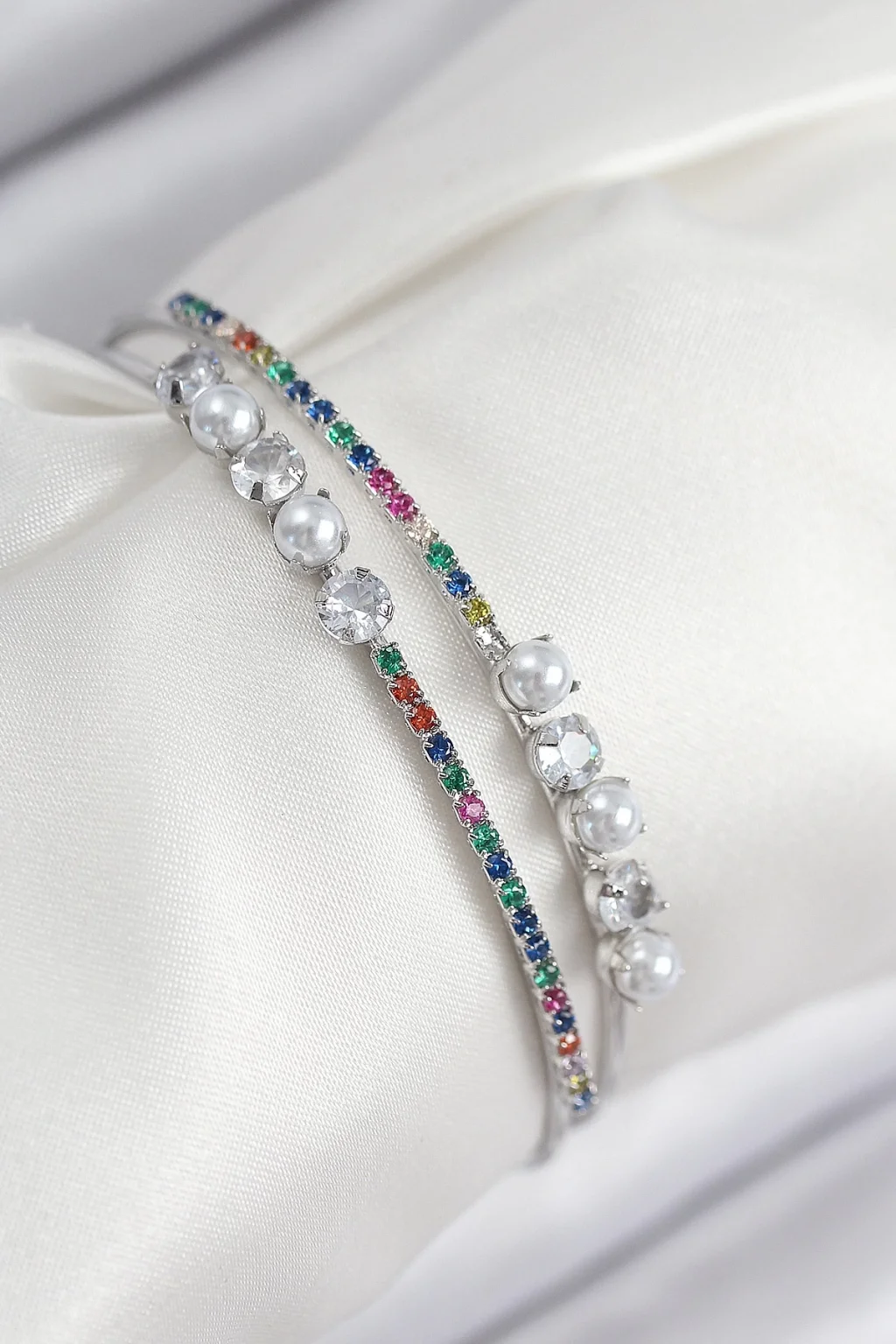 Pirinç Zirkon Taşlı İnci Model Gümüş Renk Kadın Bileklik