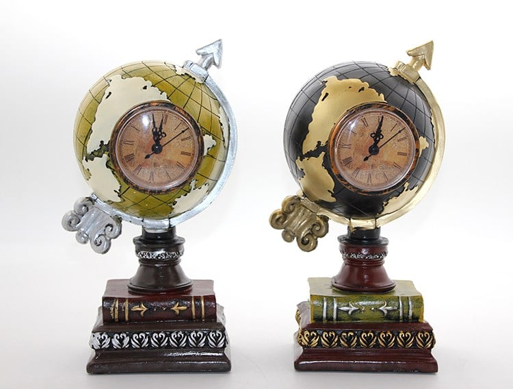 POLYESTER SAATLİ DÜNYA KÜRE Ürün Özellikleri Polyester Saatli Dünya Küre, klasik dünya küresi tasarımını masa saati fonksiyonuyla birleştiren dekoratif ve işlevsel bir masaüstü aksesuarıdır. Antik eskitme görünümlü detayları, işlemeli kaide yapısı ve üst kısmındaki küre formu ile bulunduğu ortama nostaljik ve prestijli bir hava katar. Ön yüzeyde yer alan analog saat mekanizması sayesinde hem zamanı takip edebilir hem de dekoratif bir obje olarak kullanabilirsiniz. Polyester malzemeden üretilmiş sağlam gövdesi, detaylı işçilik görünümü sunar ve masa üzerinde dengeli bir duruş sağlar. Ofis masalarında, çalışma alanlarında, kitaplık raflarında ve klasik dekorasyon tarzına sahip mekanlarda dikkat çekici bir tamamlayıcıdır. Hem dekoratif hem fonksiyonel yapısıyla öne çıkan bir saatli masaüstü dünya küresi seçeneğidir. Klasik tasarım sevenler için şık bir dekoratif polyester dünya küre saat alternatifidir. Görselde yer alan iki modelden biri karışık olarak gönderilmektedir. Ürün Teknik Özellikleri Özellik Açıklama Ürün Adı Polyester Saatli Dünya Küre Malzeme Polyester Tasarım Antik Eskitme Görünümlü Küre ve Saat Fonksiyon Analog Saat + Dekoratif Küre Model 2 Farklı Model (Karışık Gönderim) Kullanım Alanı Ev, Ofis, Çalışma Masası, Kitaplık Paket İçeriği 1 Adet Polyester Saatli Dünya Küre
