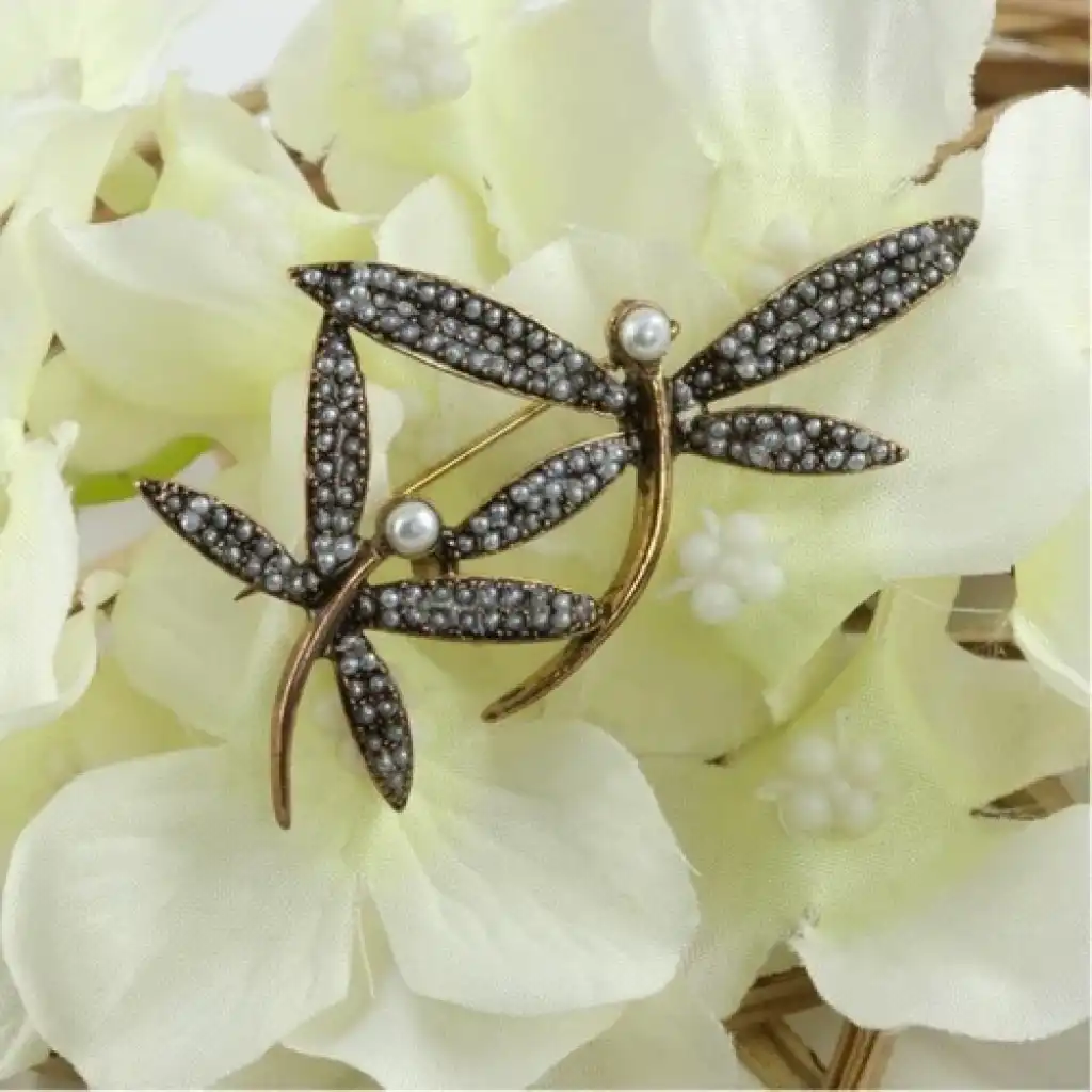 Rennway Inci Süslemeli Çift Yusufçuk Bronz Broş