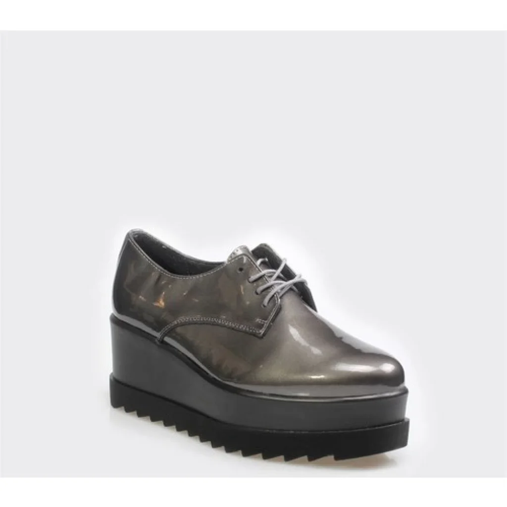 Rrm Deri Kadın Gri Rugan Klasik Ayakkabı