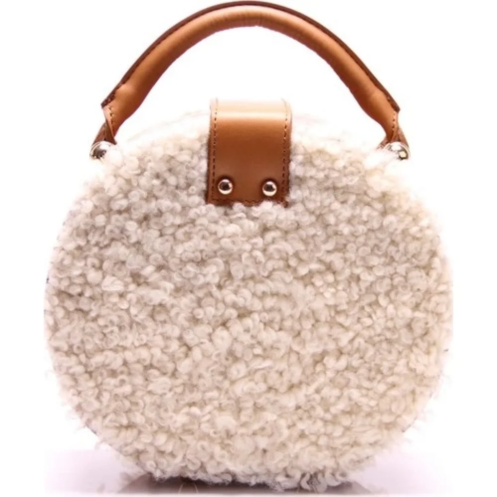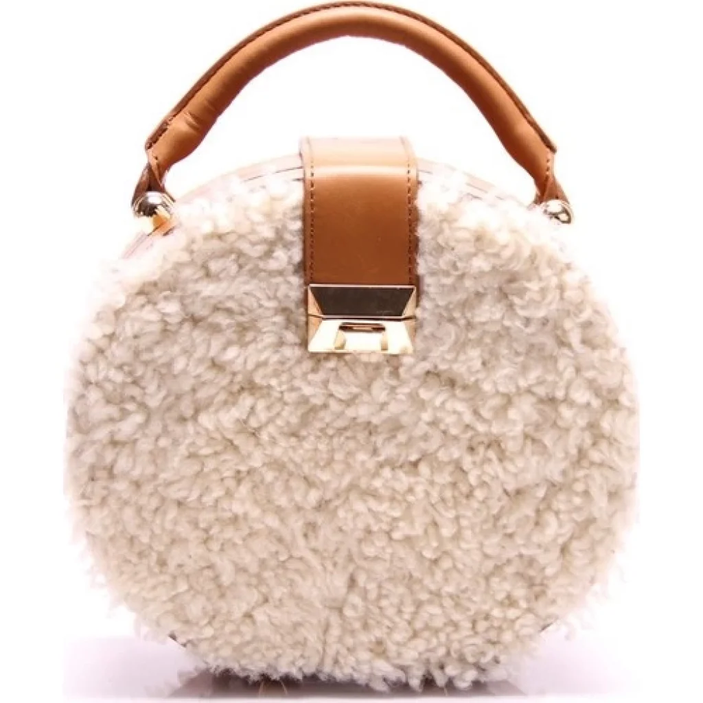 Rrm Kadın Beyaz Kürk Taba Deri Özel Tasarim Uzun Ayarlanabilir Askili Çanta