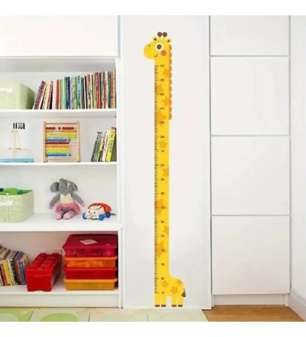 SEVİMLİ SARI ZÜRAFA BOY ÖLÇÜSÜ STICKERÜrün ÖzellikleriBoy ölçer sticker, bebek ve çocuk odalarını renklendirmenin en eğlenceli yollarından biridir. Zürafa figürü ile tasarlanmış bu boy cetveli, çocuğunuzun büyümesini takip etmenize yardımcı olur. Arkasında bulunan çift taraflı bantlar sayesinde duvara zarar vermeden kolayca yapıştırılabilir. Dayanıklı malzemesi sayesinde sert temizlik malzemeleriyle silinmediği sürece deformasyona uğramaz ve renk solması yaşanmaz. Hafif nemli yumuşak bir bezle silerek uzun ömürlü kullanım sağlayabilirsiniz.Paket İçeriği1 adet zürafa boy ölçüsü sticker