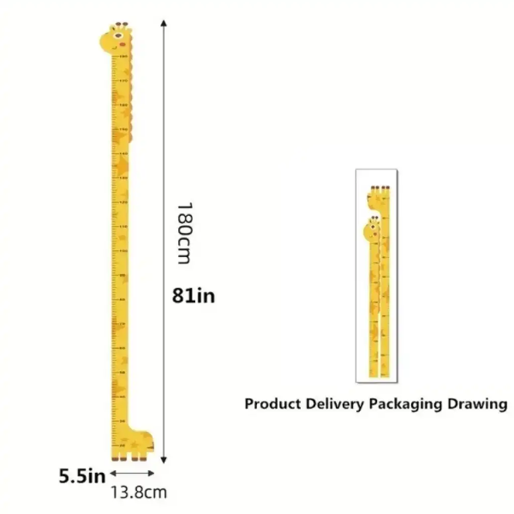 SEVİMLİ SARI ZÜRAFA BOY ÖLÇÜSÜ STICKERÜrün ÖzellikleriBoy ölçer sticker, bebek ve çocuk odalarını renklendirmenin en eğlenceli yollarından biridir. Zürafa figürü ile tasarlanmış bu boy cetveli, çocuğunuzun büyümesini takip etmenize yardımcı olur. Arkasında bulunan çift taraflı bantlar sayesinde duvara zarar vermeden kolayca yapıştırılabilir. Dayanıklı malzemesi sayesinde sert temizlik malzemeleriyle silinmediği sürece deformasyona uğramaz ve renk solması yaşanmaz. Hafif nemli yumuşak bir bezle silerek uzun ömürlü kullanım sağlayabilirsiniz.Paket İçeriği1 adet zürafa boy ölçüsü sticker