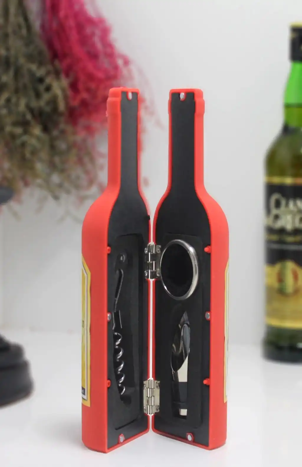 ŞİŞE TİRBÜŞON SETİ KÜÇÜK BOY - KIRMIZIÜrün ÖzellikleriKüçük boy şişe tirbuşon seti, kompakt ve ergonomik tasarımıyla şarap açma işlemini hızlı ve pratik hale getirir. 14x6 cm ölçülerine sahip olup, taşınabilir yapısı sayesinde her yerde rahatlıkla kullanılabilir. Kırmızı renkli şık tasarımı, zarif ve modern bir görünüm sunar. Güçlü mekanizması sayesinde şarap şişelerinin mantarlarını kolayca çıkarmaya yardımcı olur. Evde, restoranda, piknikte veya özel davetlerde kullanıma uygundur. Şarap severler ve koleksiyoncular için ideal bir hediye seçeneğidir.Paket İçeriği1 adet küçük boy kırmızı şişe tirbuşon seti.