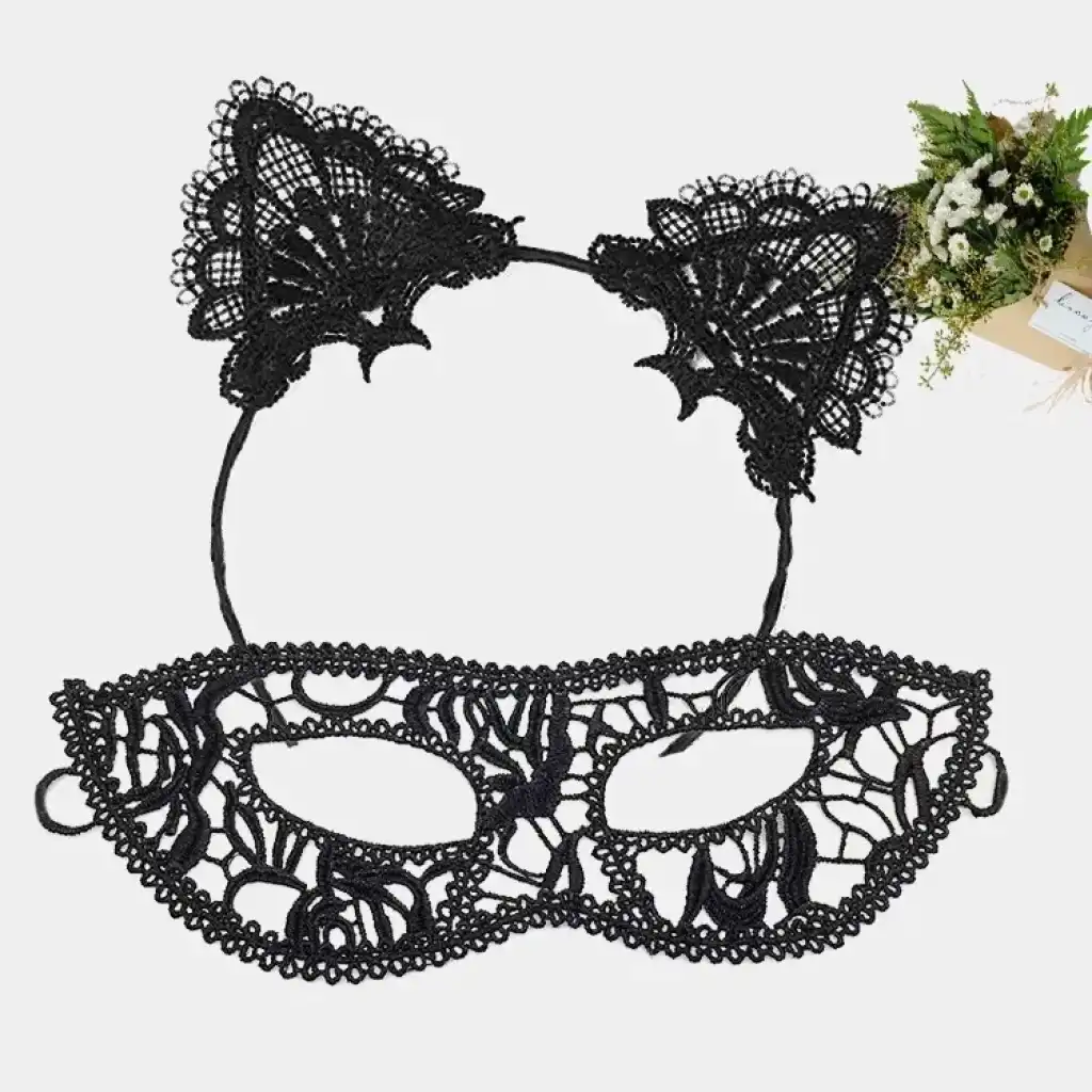 Siyah Dantel Maske ve Kulak Taç Seti No 12