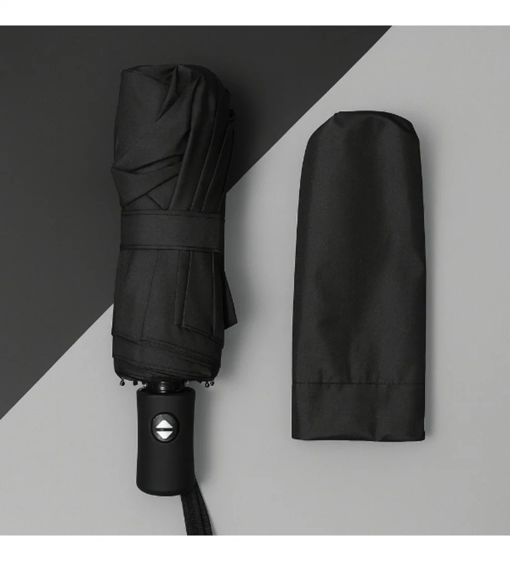 SİYAH KILIFLI OTOMATİK KOMPAKT ŞEMSİYEÜrün Özellikleri Siyah kılıflı otomatik kompakt şemsiye, sade ve zarif tasarımıyla her kullanım alanına uygun pratik bir üründür. 98x58 cm açık boyutu sayesinde geniş koruma alanı sunarken, 28x6 cm kapalı ölçüsüyle çantada, araçta veya seyahat çantasında kolayca taşınabilir. Tek tuşla otomatik açılma sistemi, ani yağmurlarda hızlı kullanım imkânı sağlar. Güçlendirilmiş 8 telli yapısı, rüzgârlı havalarda dayanıklılık sunarken, su geçirmez kaliteli kumaşıyla yağmurdan tam koruma sağlar. Ergonomik sap tasarımı rahat bir tutuş sunar, kendi kılıfı sayesinde şemsiye temiz ve düzenli şekilde saklanabilir. Hem günlük kullanım hem de seyahatler için ideal bir tercihtir. Paket İçeriği 1 adet Siyah Kılıflı Otomatik Kompakt Şemsiye