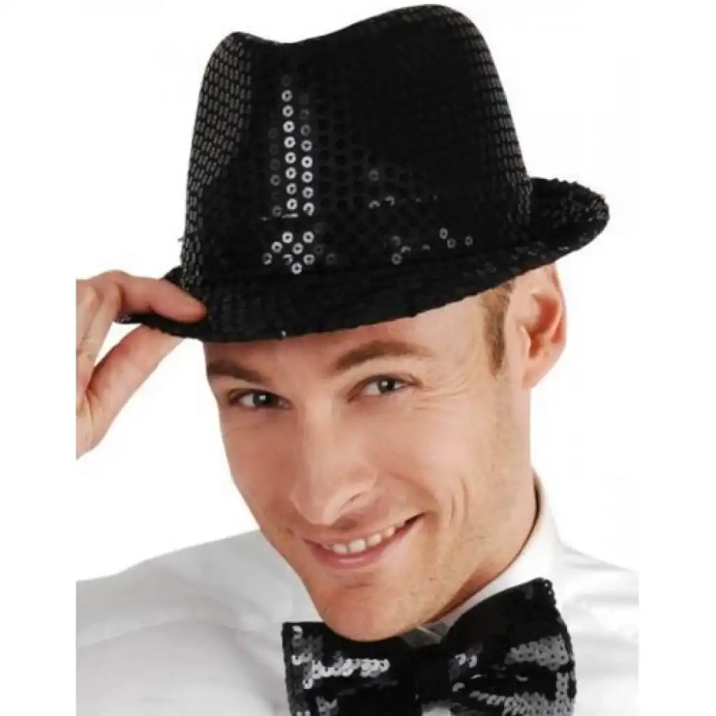 1 Adet Siyah Payetli Fötr Şapka Yetişkin Boy