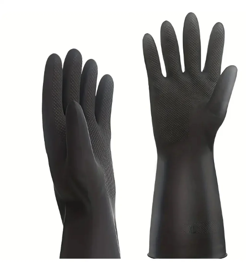 SİYAH RENKLİ ENDÜSTRİYEL ELDİVENÜrün Özellikleri Siyah renkli endüstriyel eldiven, üç katmanlı organik lateks malzemeden üretilmiştir ve organik pamuk pudralı astarı sayesinde ellerinizi terletmeden konforlu bir kullanım sunar. Kalın, esnek, yumuşak ve hassas yapısı ile elinizi tam olarak kavrayarak uzun süreli çalışmalarda dahi rahatlık sağlar. Dayanıklı yapısı sayesinde yıpranmaya karşı dirençlidir ve endüstriyel alanlarda güvenli bir kullanım sunar. İnşaat şantiyeleri, bahçıvanlık, tarım, üretim, hayvancılık, temizlik, hijyen ve genel kullanım gibi pek çok farklı alanda kullanılabilir. Çok yönlü yapısı ile pratik bir koruyucu çözüm sunan eldiven, kullanıldıktan sonra ılık su ile yıkanıp havlu ile durulanarak tekrar kullanılabilir. Paket İçeriği 1 çift siyah renkli endüstriyel eldiven