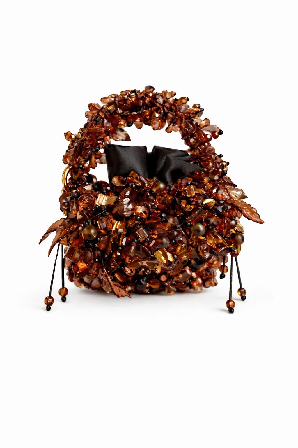 Atelier Emine’in Crystal Gelato Couture serisine ait Stracci Nutmeg, çok katmanlı kristal yüzey kurgusu ve heykelsi hobo formu ile tasarlanmış, tamamen el işçiliğiyle üretilmiş premium mini çanta modelidir.