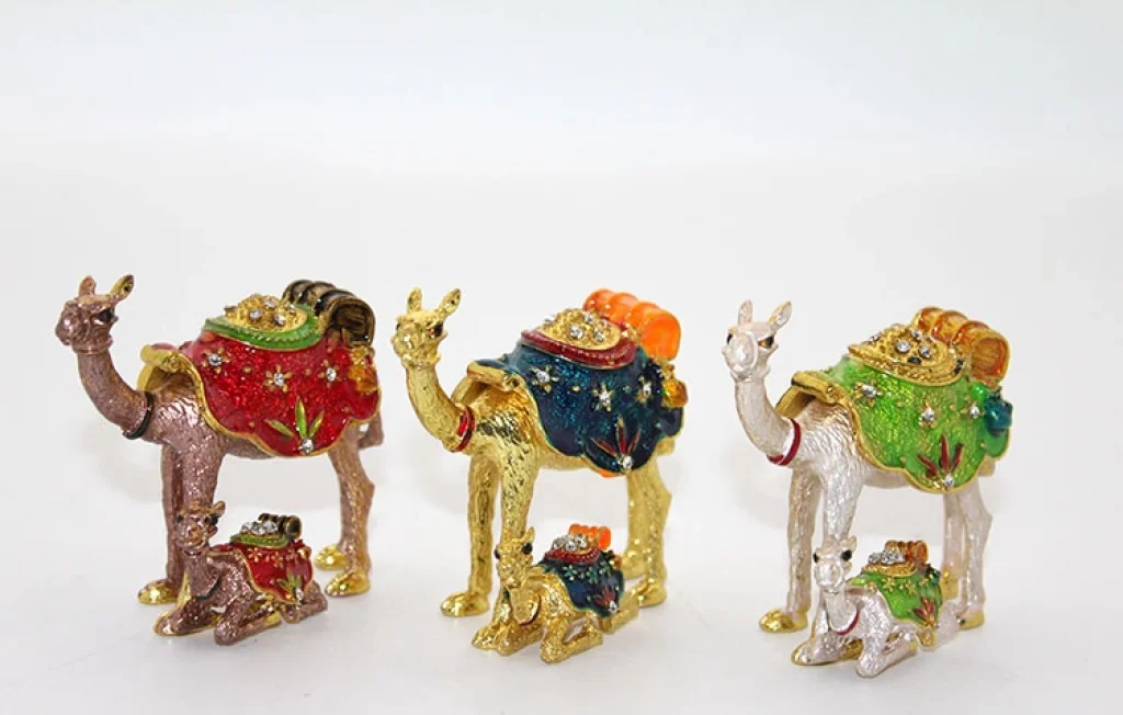 SWAROVSKİ YAVRULU DEVE MODEL 1Ürün ÖzellikleriSwarovski Yavrulu Deve Model 1, özel tasarımı ve ince işçiliğiyle göz kamaştıran dekoratif bir aksesuardır. Swarovski taşlarla süslenmiş bu koleksiyonluk obje, zarif detaylarıyla dikkat çeker. Metal gövdesi ve emaye kaplaması sayesinde uzun ömürlü ve dayanıklı bir yapıya sahiptir. Yavrulu deve figürü, otantik ve geleneksel bir hava katarken, ev ve ofis dekorasyonuna farklı bir dokunuş sağlar. Koleksiyoncular ve dekoratif aksesuar sevenler için ideal bir seçimdir.Not: Ürün farklı renklerde mevcuttur ve stok durumuna göre karışık gönderilmektedir. Paket İçeriği1 Adet Swarovski Yavrulu Deve
