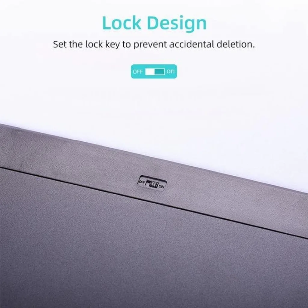 Writing Tablet Lcd 12 Inç Dijital Kalemli Çizim Yazı Tahtası grafik not yazma ve çizim tableti - Taşınabilir dijital kalemli çizim ve yazı tahtası eğitim tableti - Boyama - Duvar yazısı - Uygulama - Hesap 12 inç büyüklüğünde hem not tutmak hem resim çizmek gibi farklı fonksiyonları barındırır. Taşınabilir hafiflikte ve boyuttadır. Dokunmatik kalemi ile birlikte rahat kullanım sağlar. Hafif renk, gözlerinize zarar vermez, radyasyon yoktur. Basınca duyarlı, kullanımı kolaydır. Ekranı sadece bir düğme ile temizleyin. Arkasındaki kilit tuşu ile silmeyi tamamen durdurabilirsiniz. Pilini çıkarıp rahatça değiştirebilirisiniz. Ultra ince ve hafif tasarım, taşımak için uygun. Yazma ve çizim, ev mesajı vb. Için uygundur. Lcd grafik not yazma ve çizim tabletibas sil-Çizim yaptıktan ve yazı yazdıktan sonra tek tuş ile silebilirsiniz. 12 inç"lik lcd çizim ekranı-Ergonamik dizayn sayesinde ve ince tasarımlı lcd ekranı sayesinde kullanımı çok kolay ve pratiktir. Çok hafif olması sayesinde istediğiniz yere taşıyabilir ve istediğiniz yerde kullanabilirsiniz.