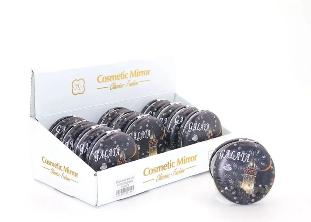 TAŞLI İSTANBUL TASARIMI EL AYNASI KALIN MODEL 6Ürün ÖzellikleriTaşlı İstanbul Tasarımı El Aynası Kalın Model 6, yuvarlak tasarım ve Galata Kulesi baskılı estetik bir üründür. Taşlı detaylar, aynanın yüzeyine zarif bir parlaklık katarken, Galata Kulesi figürü İstanbul'un simgelerinden birini yansıtır. Kalın ve dayanıklı yapısı sayesinde uzun süreli kullanım sağlar. Yuvarlak tasarımı, elinize rahatça oturur ve pratik bir kullanım sunar. İstanbul temalı tasarım, hem günlük kullanım hem de hediye olarak mükemmel bir tercihtir. Şık ve kompakt boyutu, her tür kullanım alanına uyum sağlar.Paket İçeriği1 adet Taşlı İstanbul Tasarımı El Aynası Kalın Model 6.