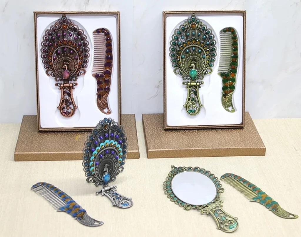 Tavuskuşu Katlanabilir Ayna Ve Tarak Seti Büyük Boy