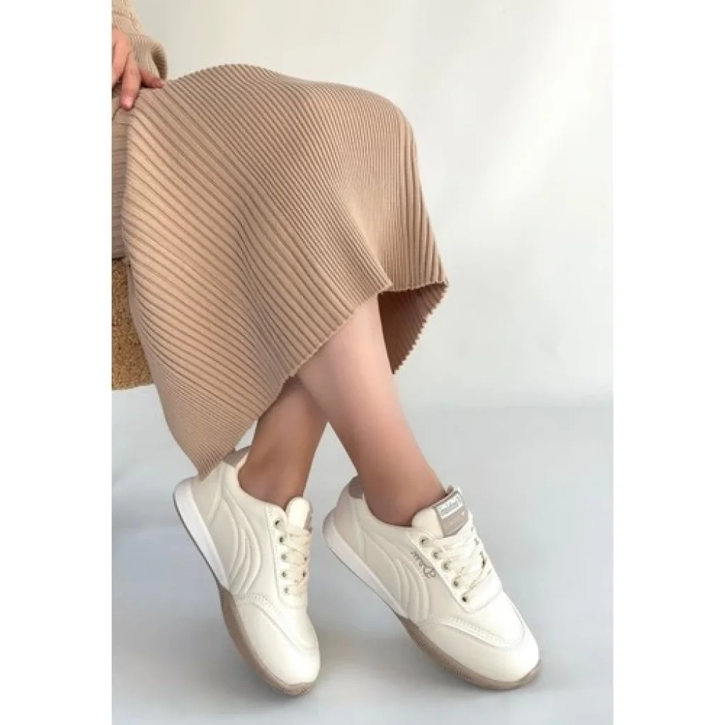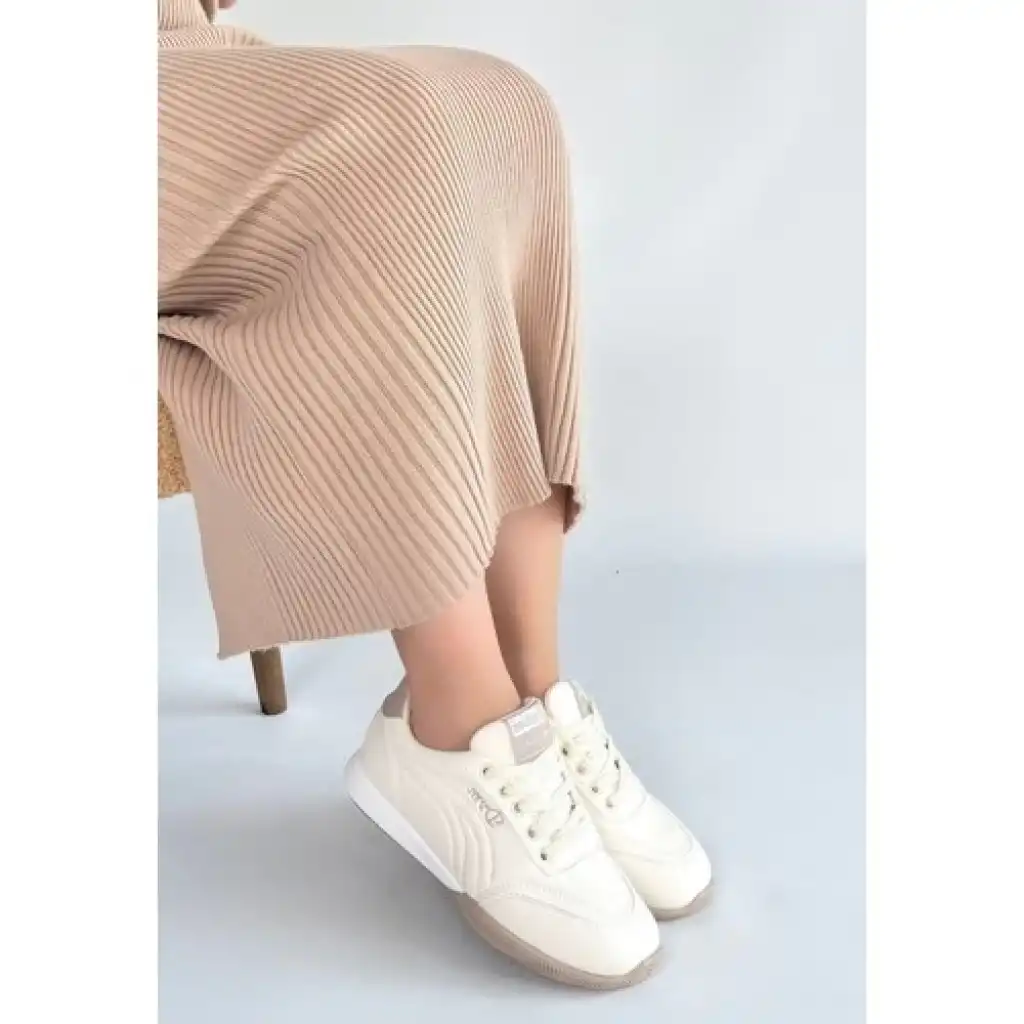 Tawen Bej Cilt Bağcıklı Spor Ayakkabı