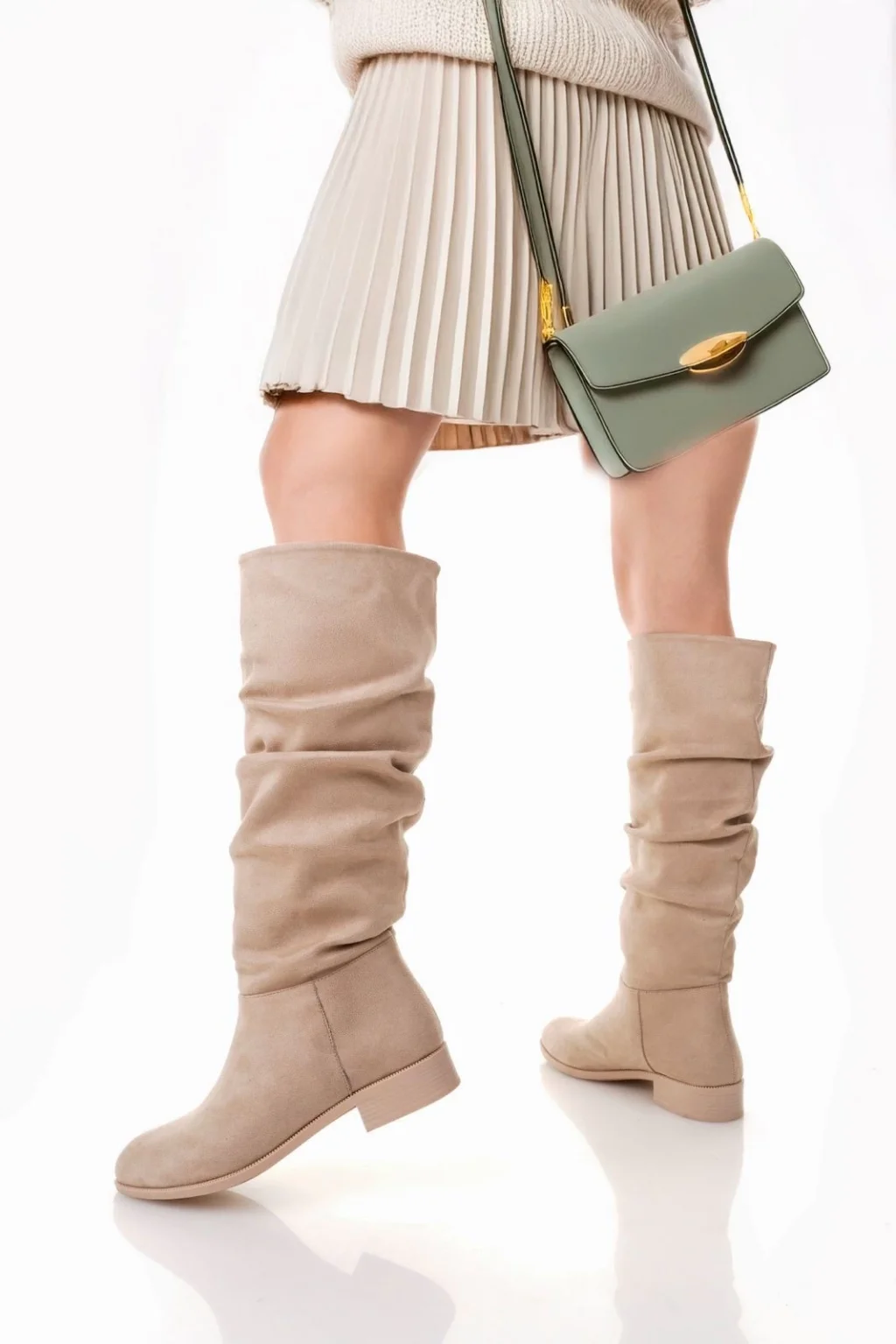 Winda Bej Süet Körüklü Çizme