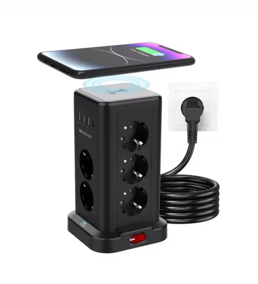 Wp711 Akım Korumalı Priz Kablosuz Şarj İstasyonu 11x Soket 3x Usb 1xtype-c Kablolu Grup Priz
