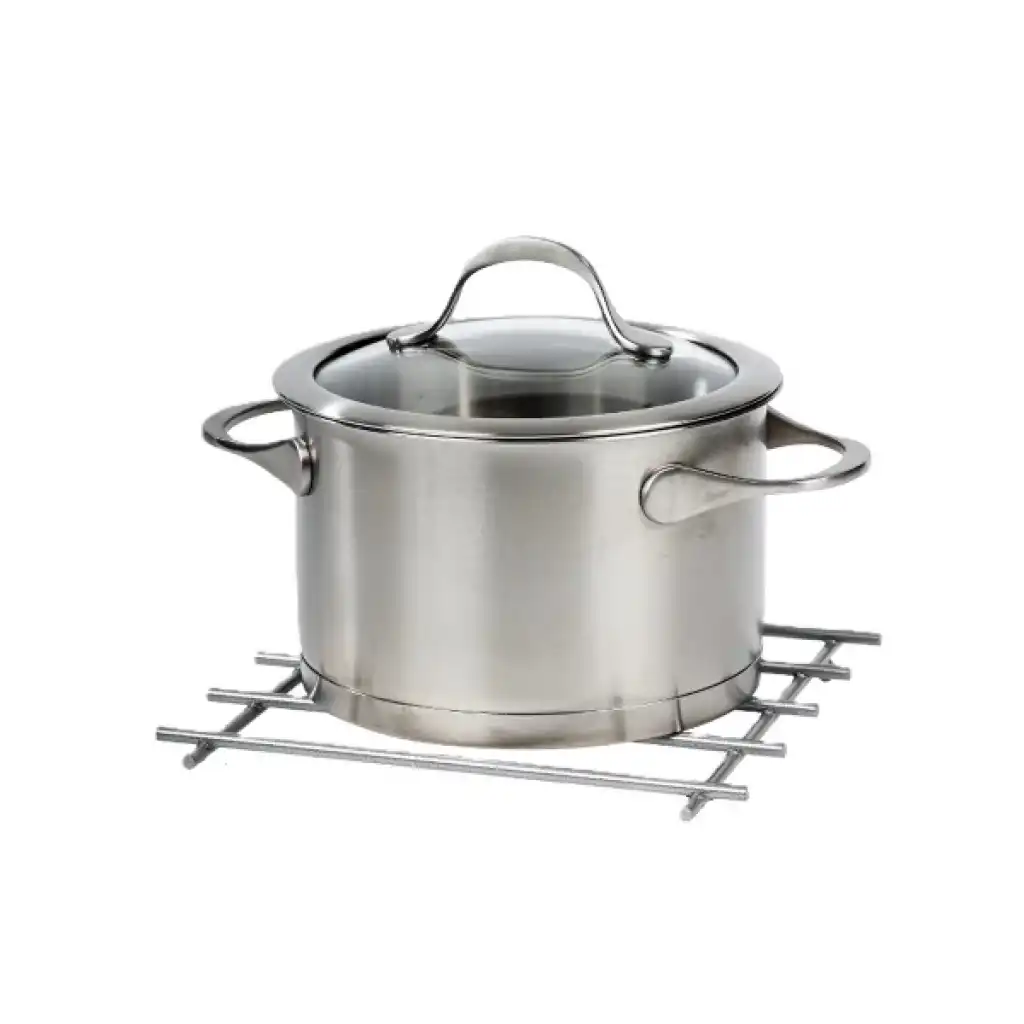 Modern tasarımıyla dikkat çeken bu yanmaz paslanmaz çelik nihale, yüksek ısıya dayanıklı yapısı sayesinde sıcak tencerelerinizi, tavalarınızı ve çaydanlıklarınızı güvenle tezgâh üzerine koymanıza olanak tanır. Krom renkli dış yüzeyi mutfak dekorasyonuna şıklık katarken, paslanmaz çelik malzemesi sayesinde uzun ömürlü kullanım sağlar. 20x20 cm boyutundaki kare formu, hem büyük hem küçük kaplar için ideal bir kullanım alanı sunar. Alt kısmındaki silikon kaydırmaz ayaklar sayesinde yüzeye zarar vermez ve kaymayı önler. Hem işlevsel hem de estetik açıdan mutfakta vazgeçilmez bir yardımcıdır.