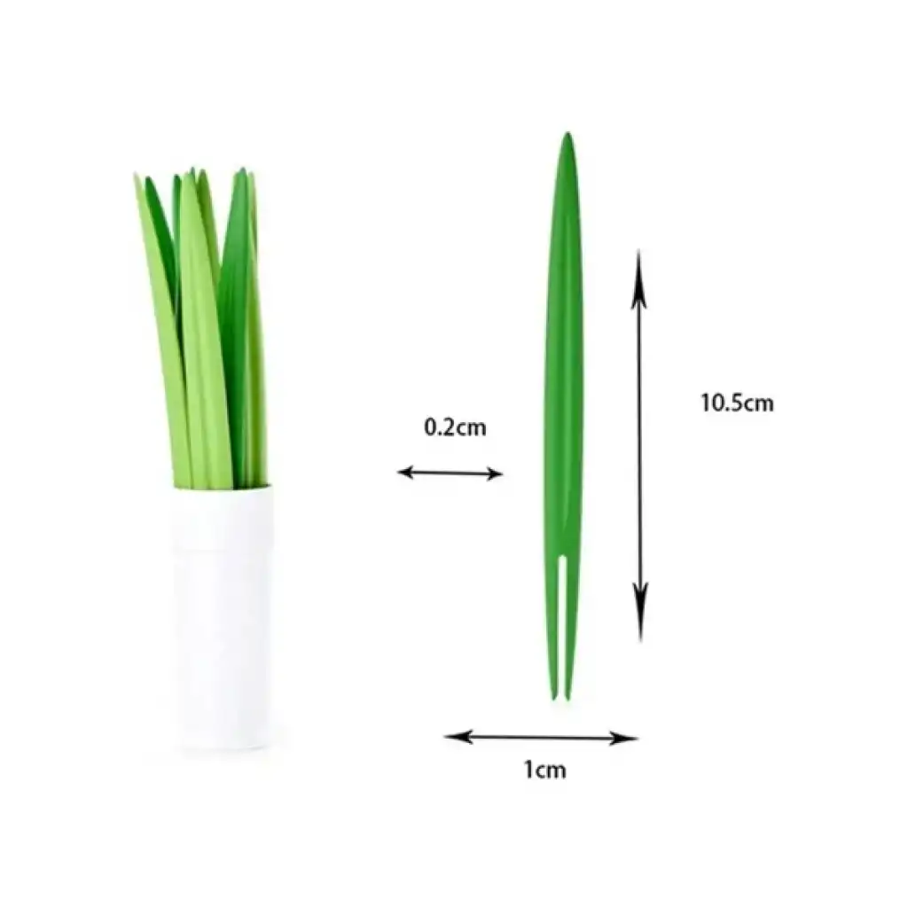 YAPRAK ŞEKLİNDE KOKTEYL ÇUBUKLARIÜrün Açıklaması Yaprak Şeklinde Kokteyl Çubukları , hem işlevsel hem de dekoratif bir ürün olarak sunumlarınıza değer katar. Yaprak tasarımı, doğal ve şık bir görünüm sağlarken, dayanıklı malzemesi sayesinde tekrar tekrar kullanılabilir. Kokteyl partileri, davetler veya günlük sunumlar için ideal bir aksesuardır.Ürün Özellikleri Her pakette 10 adet kokteyl çubuğu bulunur ve ürün kullanışlı bir saklama kabıyla birlikte gelir. Gıda temasına uygun, BPA içermeyen plastikten üretilen bu çubuklar, dayanıklı yapısı sayesinde uzun ömürlüdür ve yeniden kullanılabilir. Çift uçlu tasarımı, zeytin, peynir, meyve gibi küçük atıştırmalıkları kolayca tutmanıza olanak tanır.Kolay temizlenebilir yüzeyi sayesinde elde yıkamaya uygundur ve uzun süre hijyenik bir kullanım sağlar. Kokteyl sunumlarından meze tabaklarına, atıştırmalıklardan özel dekorasyonlara kadar geniş bir kullanım alanı sunar. Dayanıklı ve hafif malzemesi, kolay taşınabilirliği ile partiler ve davetler için mükemmel bir aksesuardır. Paket İçeriği10 adet yaprak şeklinde kokteyl çubuğu.