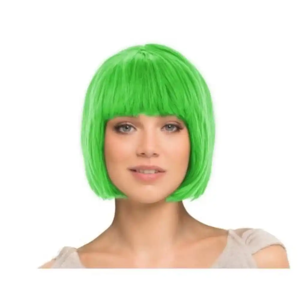 Yeşil renk parti peruğu ile partilerin en dikkat çekicisi siz olabilirsiniz.Astarlı iç yapısı sayesinde kullanımı kolaydır. Kafanıza takarken saçınızda bir bozulma ve yıpratma yapmaz30 cm boyunda olup sentetik malzemeden imal edilmiştir.Ürünün orijinal yapısı yetişkinler içindir. Çocuklar için kullanımlarda , içindeki astarı daraltmanız yeterlidir.Kullanmadan önce peruğu sallayınız.