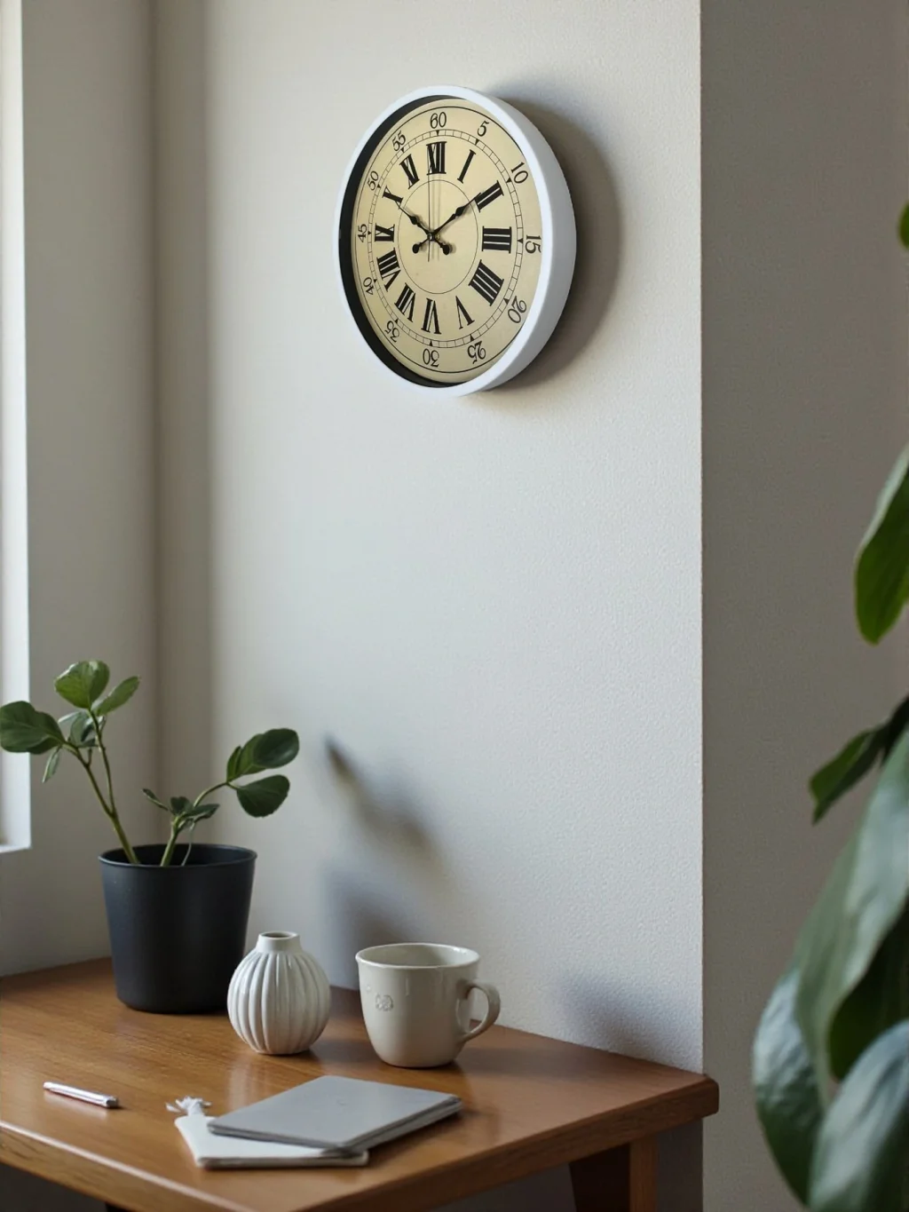 Krem eskitme kadran üzerinde yer alan büyük siyah Roman rakamları yüksek okunabilirlik sağlar. Hem estetik hem fonksiyonel bir ürün olarak ev ve iş yerleri için dekoratif değeri oldukça yüksektir.