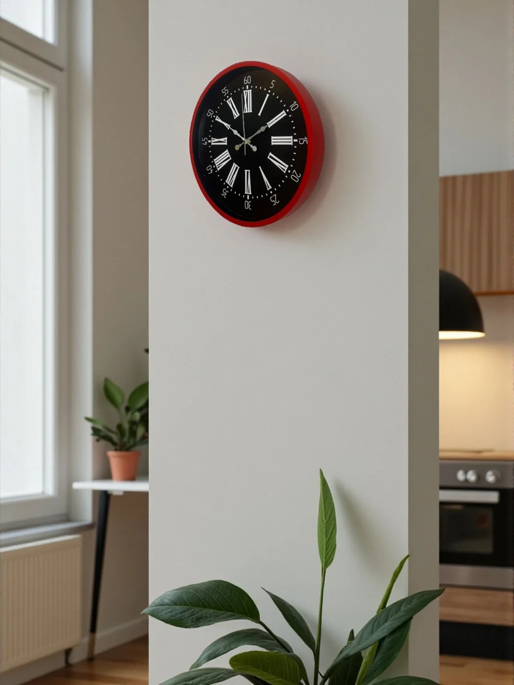 Dikkat çekici ve modern tasarımıyla öne çıkan 36 cm Kırmızı Duvar Saati, bulunduğu ortama enerji, hareket ve stil katmak isteyenler için mükemmel bir dekoratif parçadır. Kırmızı çerçevenin siyah zemin ve beyaz Roman rakamlarıyla oluşturduğu güçlü kontrast, saatin duvarda çok şık ve belirgin durmasını sağlar. Yaşam alanlarında ya da ticari ortamlarda atmosferi anında canlandıran bu model, modern ve renkli dekor stilinin vazgeçilmez tamamlayıcısıdır.