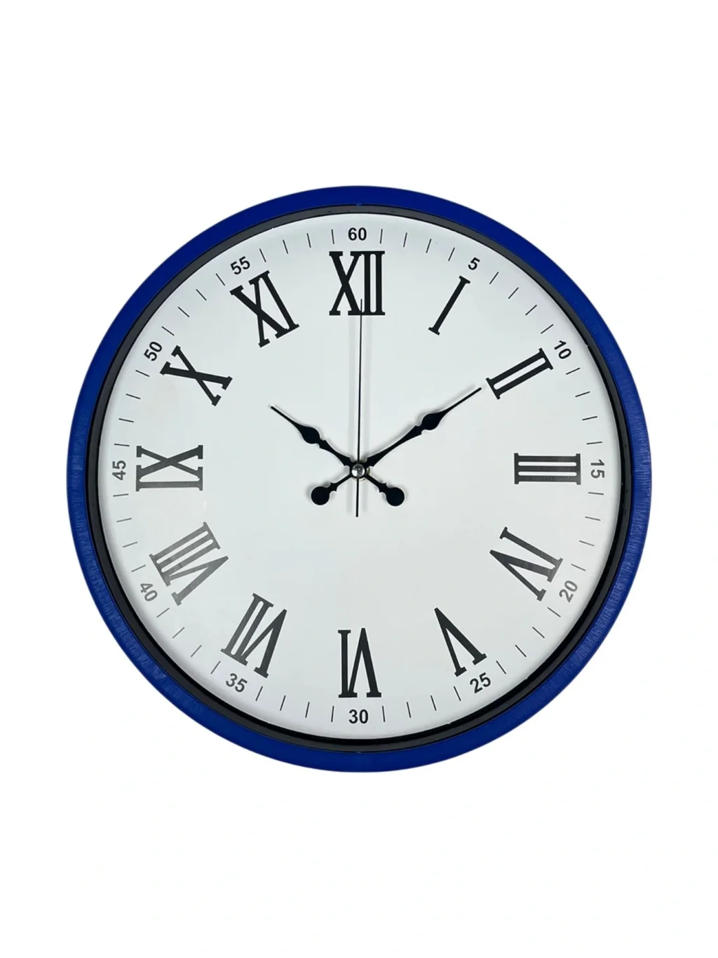 Klasik Roma rakamlarının zarafetini modern bir çerçeveyle buluşturan 36 cm lacivert duvar saati, ev ve iş yerlerinde dekoratif şıklık arayanlar için mükemmel bir seçimdir. Derin lacivert çerçevesi, beyaz kadranı ve büyük Roma rakamlarıyla hem modern hem klasik tarzın birleştiği zamansız bir tasarım sunar.