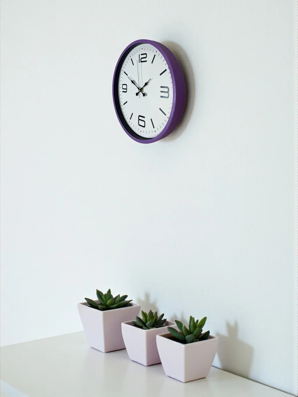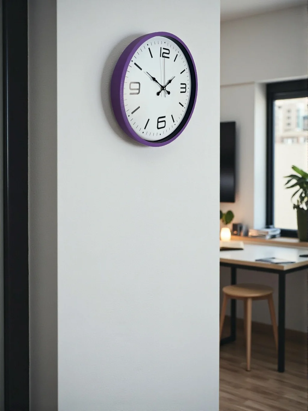 Geniş ve sade kadranı, büyük rakamları ve okunabilir çizgisel tasarımı sayesinde uzak mesafeden bile saati rahatça görmenizi sağlar. Sessiz akan saniye mekanizması, rahatsız edici tıkırtı sesi oluşturmaz; yatak odası, çalışma odası ve ofis gibi sessizlik gerektiren alanlar için idealdir. Mor çerçevesi ise dekorasyonda farklılık yaratmak isteyen kullanıcılar için modern ve güçlü bir tarz sunar.
