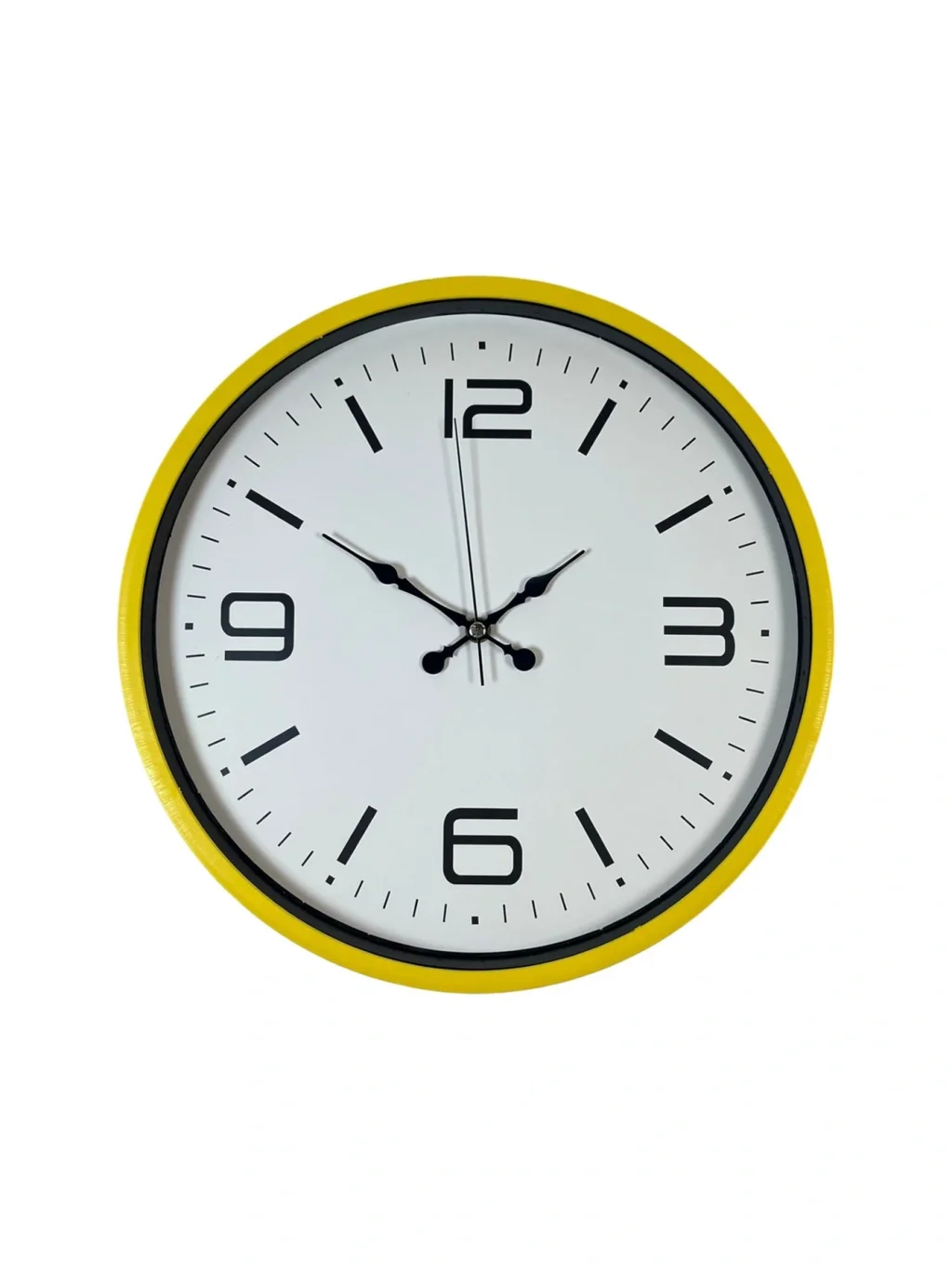 Enerjik sarı çerçevesiyle yaşam alanlarına canlılık katan 36 cm duvar saati, modern ve sade tasarımıyla her dekorasyona uyum sağlar. Geniş ve okunaklı kadranı sayesinde uzak mesafeden bile saati rahatça görebilirsiniz. Ürünümüzün önü 2 mm kalınlığında gerçek cam ile üretilmiştir; böylece hem çok daha şık bir görünüm sunar hem de uzun yıllar boyunca çizilmelere ve toza karşı dayanıklı kalır.