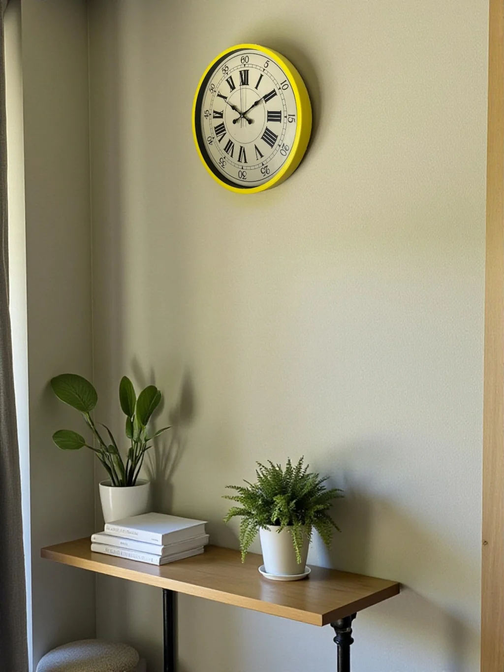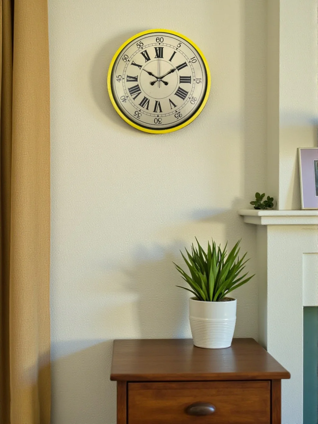 Canlı sarı çerçevesi ve eskitme krem tonlarındaki şık kadranı ile fark yaratan 36 cm Sarı Duvar Saati, bulunduğu ortama enerjik, modern ve estetik bir hava katar. Tasarımında kullanılan büyük ve okunaklı siyah Roman rakamları, retro ve vintage tarzı benzersiz bir şekilde modern dokunuşlarla birleştirir. Ev dekorasyonunda güçlü bir detay arayanlar için ideal bir seçimdir.