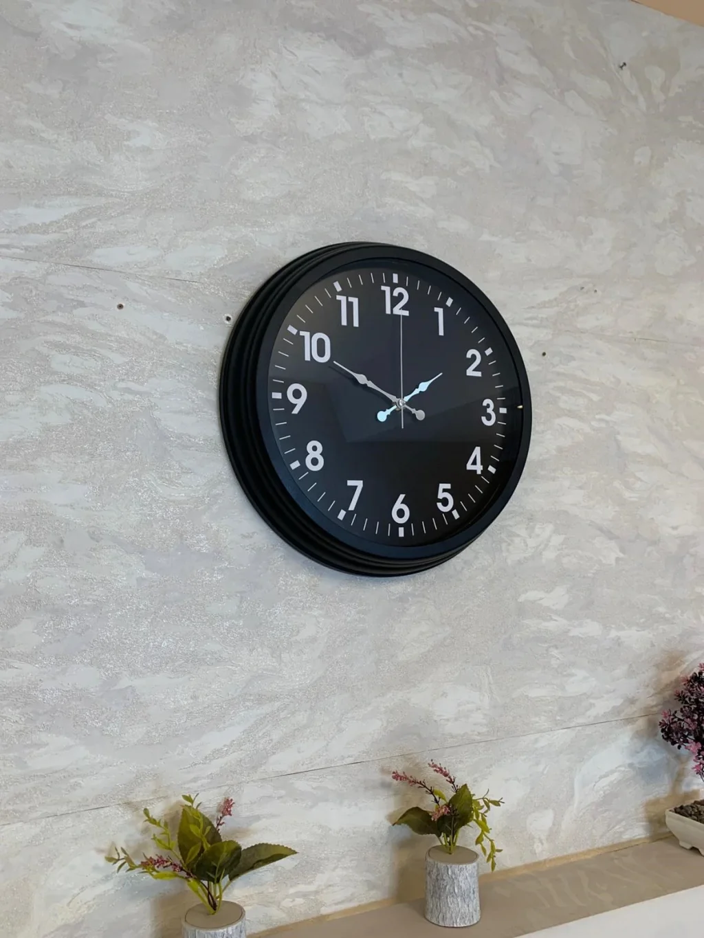 Zarif ve modern tasarımıyla dikkat çeken 40 cm Siyah Duvar Saati, yaşam alanlarında hem şıklığı hem fonksiyonelliği bir arada sunmak isteyenler için ideal bir modeldir. Tamamen siyah tasarımı, beyaz büyük rakamlar ve sade çizgilerle birleşerek güçlü bir kontrast yaratır. Bu sayede saat uzaktan bile net bir şekilde okunabilir ve duvarda dekoratif bir vurgu noktası oluşturur.